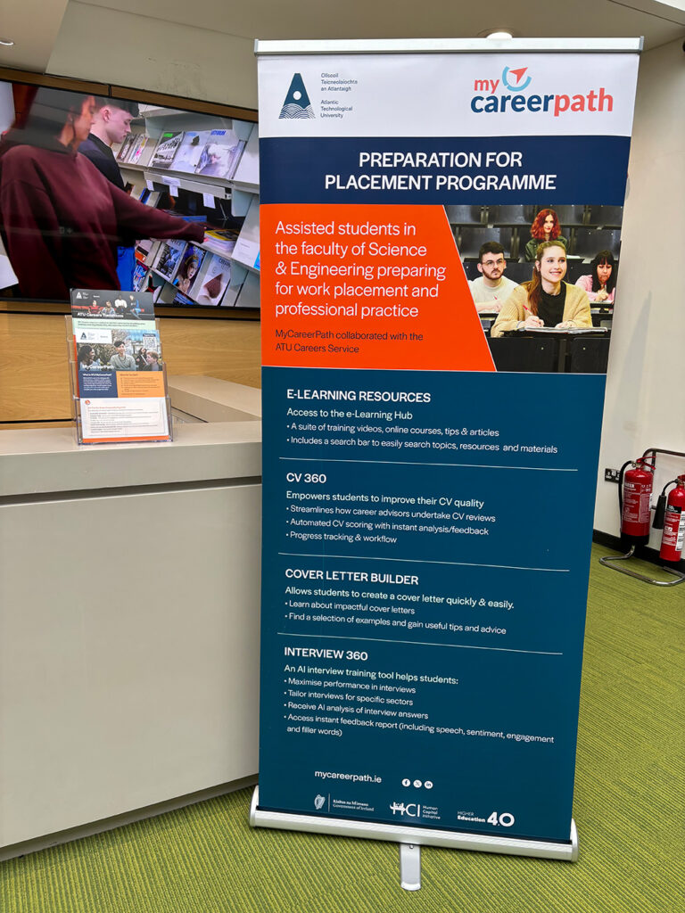 During the 2024/2025 academic year, more than 28,000 activities were completed on the MyCareerPath platform. In addition to supporting work placements, the ATU/MyCareerPath team has also delivered the Final Year Student Employability Programme and the Final Year Student Postgraduate Preparation Programme — further strengthening students’ progression pathways.